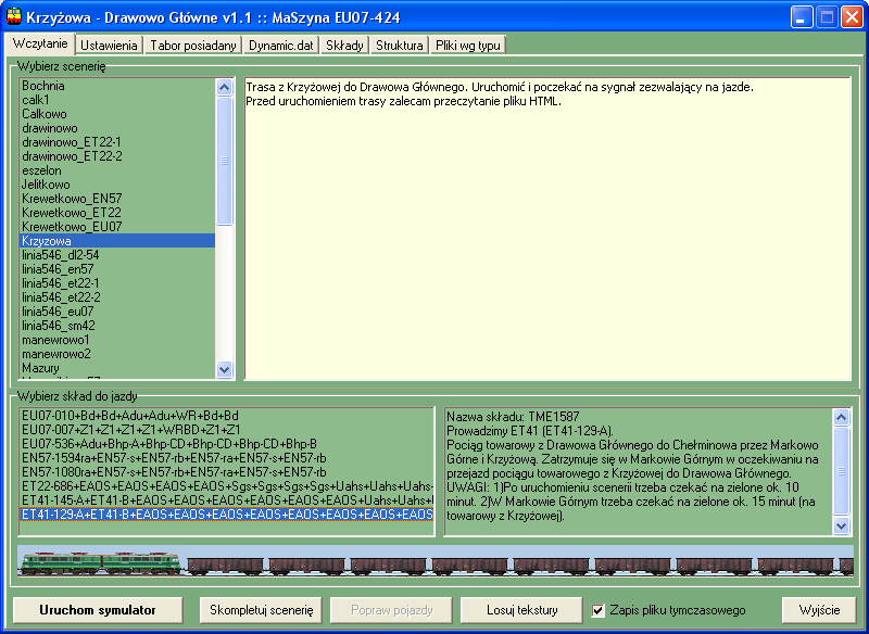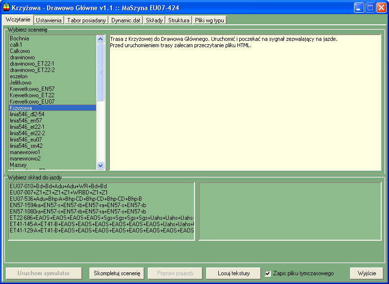 Jeżeli przycisk "Uruchom symulator" jest aktywny, klikamy go i czekamy, aż sceneria sie uruchomi.Gdy nie jest - czytaj dalej...Okienko 800x600 już mi nie odpowiada. Mam kilka plików *.exe. Mam ulubiony skład. Chcę nim jeździć wszędzie... Nie wszystkie tekstury są losowane. |